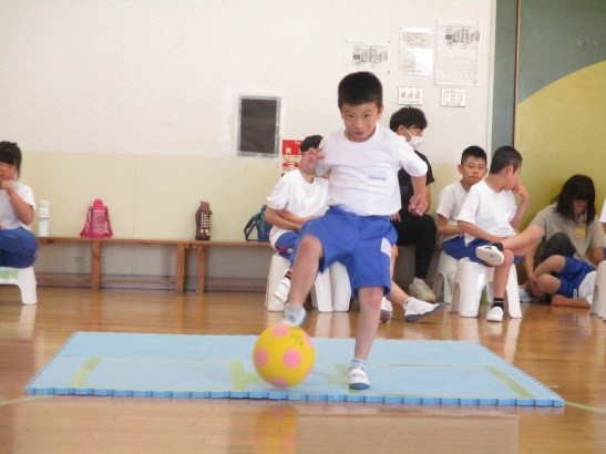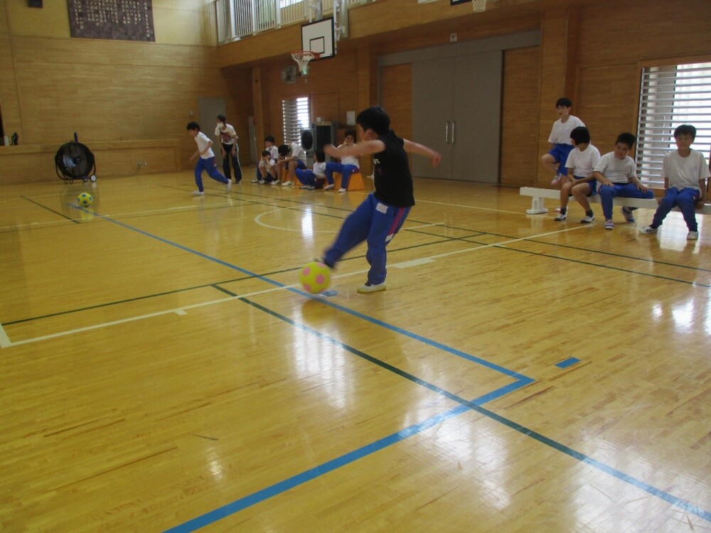 先日、体育の授業参観が行われ、子ども達はキックベースボールの単元に取り組みました。キックベースボールは、ボールを蹴って走ることで得点を競うスポーツです。子どもたちは助走をつけてボールを遠くへ蹴り出す練習をしたり、的をねらってボールをける練習をしたりしました。保護者の皆様が見守る中、子どもたちは少し緊張ぎみでしたが、一生懸命練習に取り組むことができました。