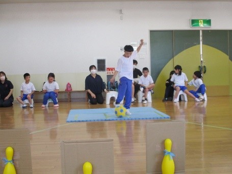 山梨県立わかば支援学校 > 活動のようす > 小学部 > 【小学部】5年生授業参観 キックベースボールに挑戦! 2024年6月24日カテゴリー: 小学部 活動のようす 【小学部】5年生授業参観 キックベースボールに挑戦! 先日、体育の授業参観が行われ、子ども達はキックベースボールの単元に取り組みました。キックベースボールは、ボールを蹴って走ることで得点を競うスポーツです。子どもたちは助走をつけてボールを遠くへ蹴り出す練習をしたり、的をねらってボールをける練習をしたりしました。保護者の皆様が見守る中、子どもたちは少し緊張ぎみでしたが、一生懸命練習に取り組むことができました。