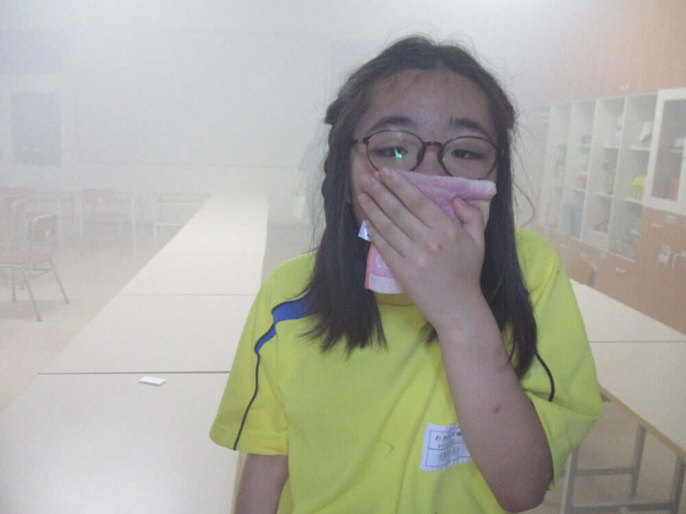 6月18日(水)に、起震車体験をしました。震度4から震度6強の揺れを体験しました。はじめて経験する揺れに生徒たちは驚いたり怖がったりしていましたが、机の下にもぐる、頭を守るといった「自分の命は自分で守る」行動を行うことができました。また、煙体験も行い、ハンカチで口元を押さえながら、出口まで煙の中を歩いていくことができました。防災への意識が高まったとともに、災害時に自分の命を守る行動について考える貴重な機会となりました。