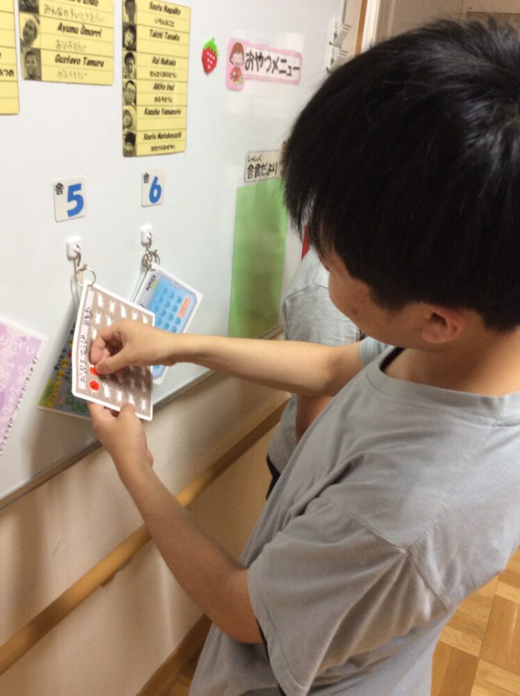 山梨県立わかば支援学校 > 活動のようす > 寄宿舎 > 【寄宿舎】ポイント活動に取り組んでいます! 2025年7月17日カテゴリー: 寄宿舎 活動のようす 【寄宿舎】ポイント活動に取り組んでいます! 新しくスタートしたこの活動は、寄宿舎生活の中で、みんなのためになることを1つ頑張るごとにシールが1枚もらえるという活動です。みんなの水筒洗いや花の水やり、洗濯場の掃除…他にもゴミ拾いやおやつ運び等、自分で頑張ることを決めて、それぞれで意識しながら取り組んでいます。シールがもらえるとモチベーションもアップ!初めて取り組んだときより食器の洗い方が上手になったり、丁寧に取り組むことができるようになったりと、頼もしい姿がたくさん見られています。