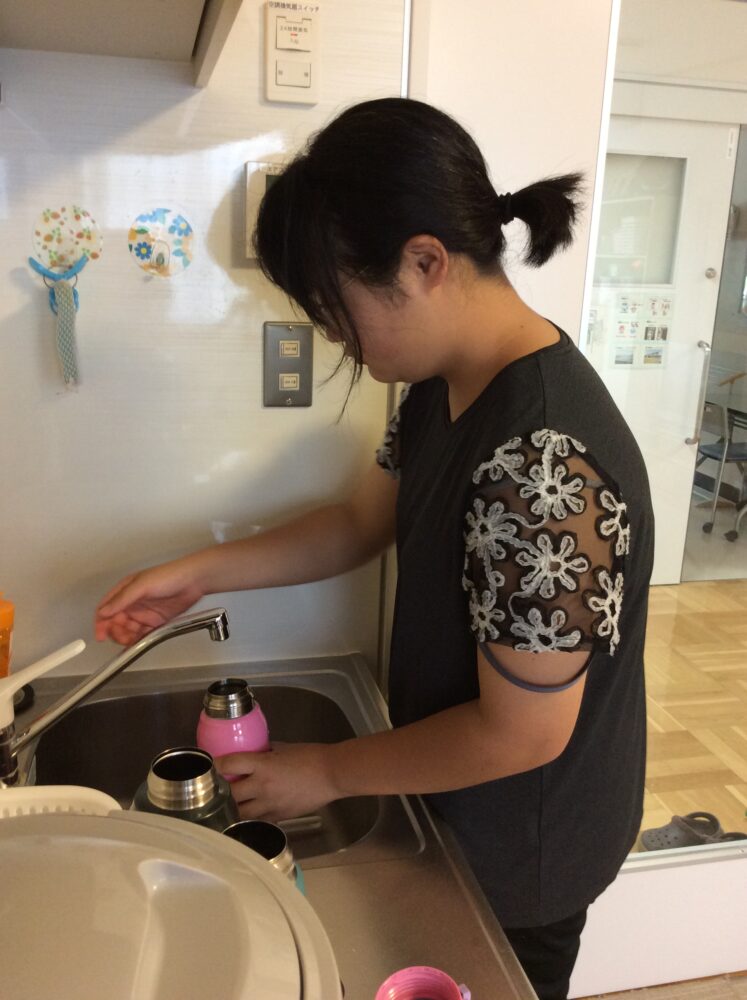 新しくスタートしたこの活動は、寄宿舎生活の中で、みんなのためになることを1つ頑張るごとにシールが1枚もらえるという活動です。みんなの水筒洗いや花の水やり、洗濯場の掃除…他にもゴミ拾いやおやつ運び等、自分で頑張ることを決めて、それぞれで意識しながら取り組んでいます。シールがもらえるとモチベーションもアップ!初めて取り組んだときより食器の洗い方が上手になったり、丁寧に取り組むことができるようになったりと、頼もしい姿がたくさん見られています。