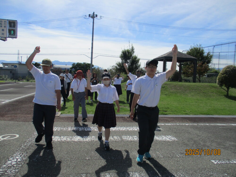 山梨県立わかば支援学校 > 活動のようす > 高等部 > 高等部1年 交通安全教室 2025年12月19日カテゴリー: 活動のようす 高等部 高等部1年 交通安全教室 10月8日(水)に、交通安全教室を実施しました。南アルプス市の総合交通センターへ行き、歩行訓練を行ったり、生活の中で、身を守るためにできること等のお話を聞いたりしました。普段、何気なく通っている横断歩道でも安全に、そして確実に歩く手順を改めて学ぶことができました。