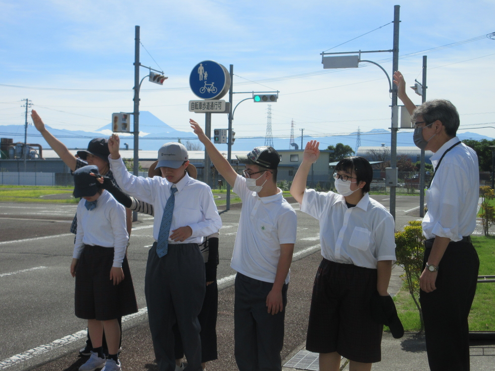 10月8日(水)に、交通安全教室を実施しました。南アルプス市の総合交通センターへ行き、歩行訓練を行ったり、生活の中で、身を守るためにできること等のお話を聞いたりしました。普段、何気なく通っている横断歩道でも安全に、そして確実に歩く手順を改めて学ぶことができました。
